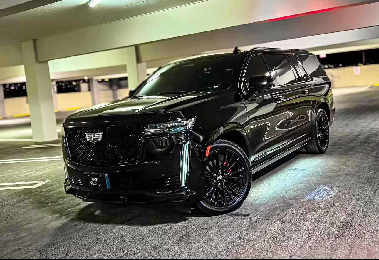 Ride in luxury. Black SUV options range from Chevy Suburban, GMC Denali, & Cadillac Escalades.
